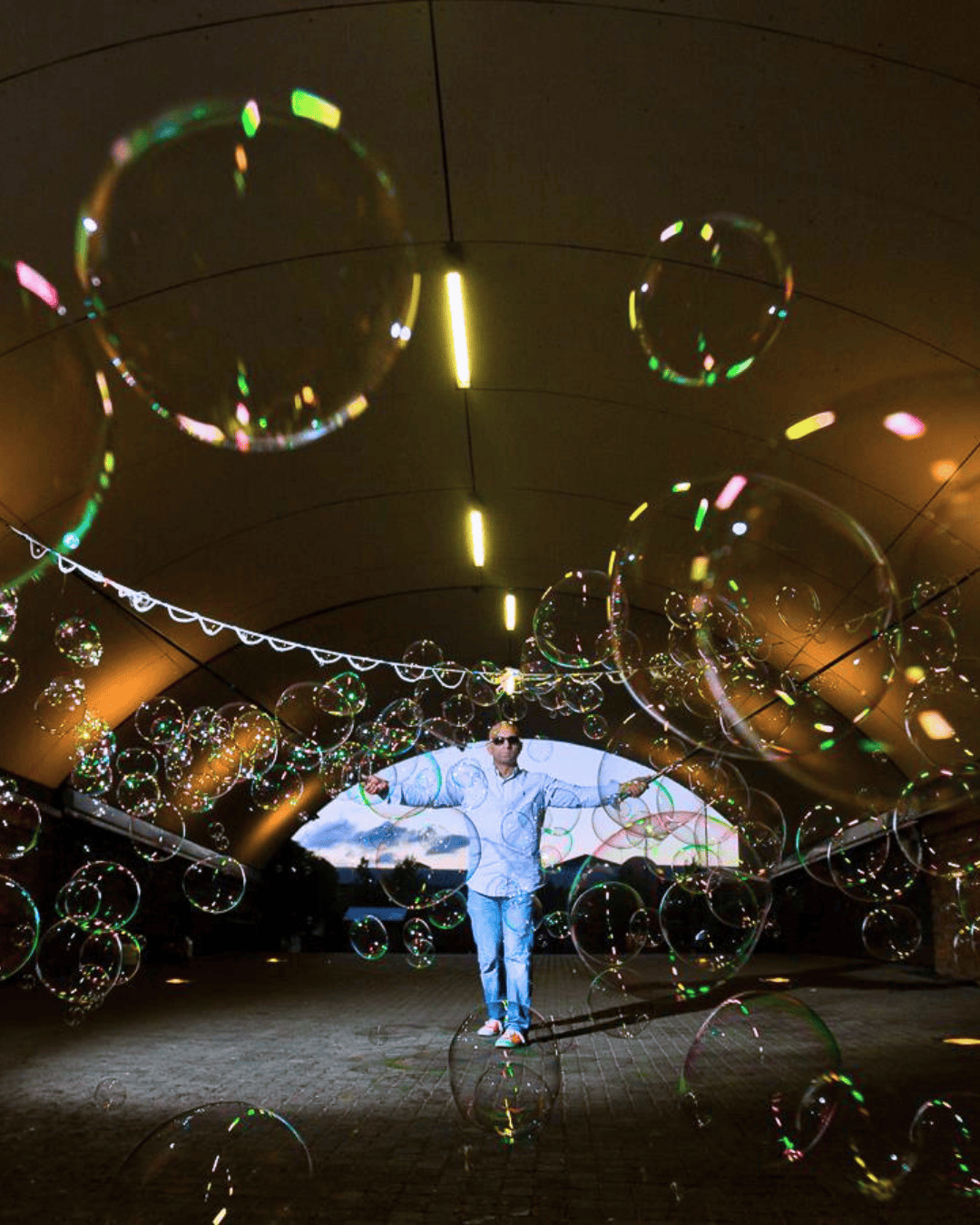 Watch in amazement as Ray creates a volcano bubble, a soap bubble carrousel, a bubble ghost and even a tornado inside a bubble!!!